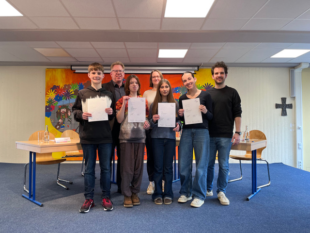 Seit Beginn des Jahres wurde in der Jahrgangsstufe 9 intensiv "gestritten", denn das Debattieren ist fester Bestandteil der Unterrichtsreihe zur Erörterung im Fach Deutsch. Der bundesweit bekannte Wettbewerb Jugend debattiert bietet dabei das ideale Format, um überzeugend zu argumentieren, dem Gegenüber bewusst zuzuhören, immer wieder aufeinander einzugehen und die eigene Gesprächsfähigkeit unter Beweis zu stellen. Den Auftakt des Schulentscheids bildeten zwei Halbfinalrunden, in denen die zuvor gekürten Kurssiegerinnen und -sieger der Stufe 9 über die Frage "Sollen Schülerinnen und Schüler ihre Schule selbst putzen?" stritten – ein Thema, das den Alltag aller Beteiligten unmittelbar berührt und entsprechend lebhaft diskutiert wurde.