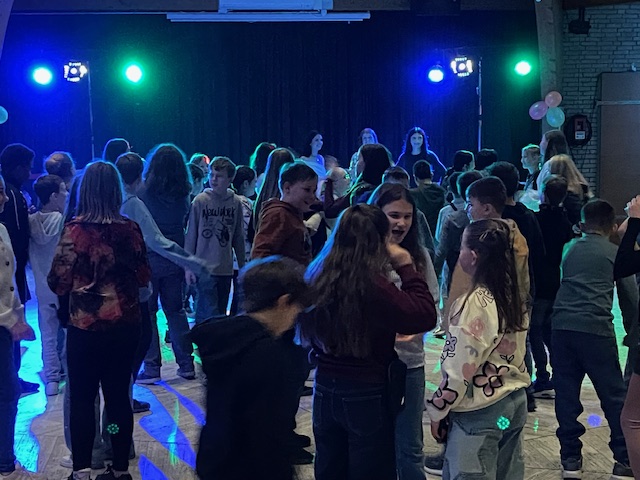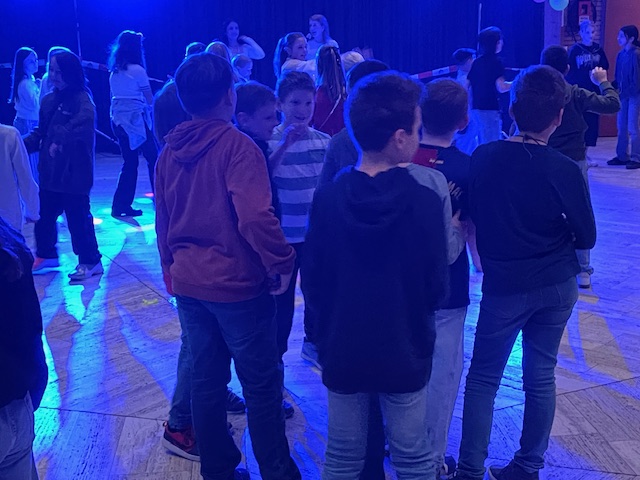 Aber was machte die Feier zu etwas ganz Besonderem? Die Gastgebenden fanden den perfekten Mix aus Zeit fürs Tanzen und Reden sowie gemeinsamer Spiele, der dazu führte, dass alle einen riesigen Spaß hatten. Gekonnt moderierten Amina Habash und Insa Bodenbach durch den Abend und leiteten Stopptanz, Reise nach Jerusalem und einen Limbotanz an. Dabei motivierten nicht nur kleine Preise für die Sieger, sondern die Begeisterung der Teilnehmer und das Anfeuern aller Spieler erzeugte eine Atmosphäre der Gemeinschaft, die alle mitnahm. Den krönenden Abschluss bildete Cotton Eye Joe im Stil eines Line Dances: Die Abiturienten machten es vor und alle machten mit.
